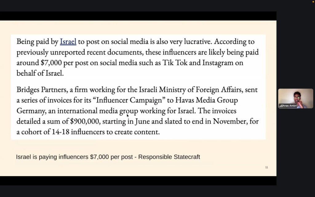 There are many so-called lifestyle influencers as well as faith-based content creators who are peddling Israeli state narratives; the key is identifying who they are, and where the financial incentive is coming from.